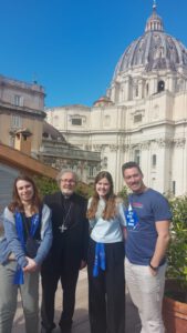 Ein besonderes Highlight war die Papstaudienz mit Papst Leo auf dem Petersplatz. Anschließend nutzten die Jugendlichen die Gelegenheit, die Postkarten der Spendenaktion zu schreiben und im Vatikanischen Postamt abzugeben. Danach standen weitere Sehenswürdigkeiten wie das Kolosseum, die Engelsburg und das berühmte Schlüsselloch auf dem Programm – gekrönt von einem gemeinsamen Pizza- und Pasta-Abend.