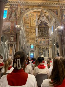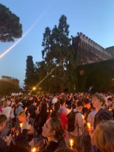 Nach einer 20-stündigen Busreise begann die Wallfahrt mit einer feierlichen Eröffnungsmesse in der Lateranbasilika, zelebriert von Diözesanjugendseelsorger Tobias Schwaderlapp. Am nächsten Tag stand Sightseeing auf dem Programm – Trevi-Brunnen, Spanische Treppe und natürlich ein Eis bei „Giolitti“ durften nicht fehlen. Am Abend folgte eine stimmungsvolle Lichterprozession mit Abendgebet in den Vatikanischen Gärten.