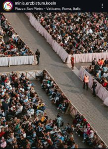 Unter diesem Motto machten sich 22 Ministrant:innen und 3 hauptamtliche Begleiter:innen aus dem „Wilden Westen“ in der ersten Ferienwoche auf den Weg zur diözesanen Ministrant:innenwallfahrt nach Rom. Gemeinsam mit rund 2000 anderen Ministrant:innen aus der Erzdiözese Köln erlebten sie eine eindrucksvolle Woche voller Glauben, Gemeinschaft und unvergesslicher Erlebnisse.